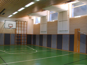 Cette salle de gymnastique tient lieu d'aula lors de grands rassemblements.